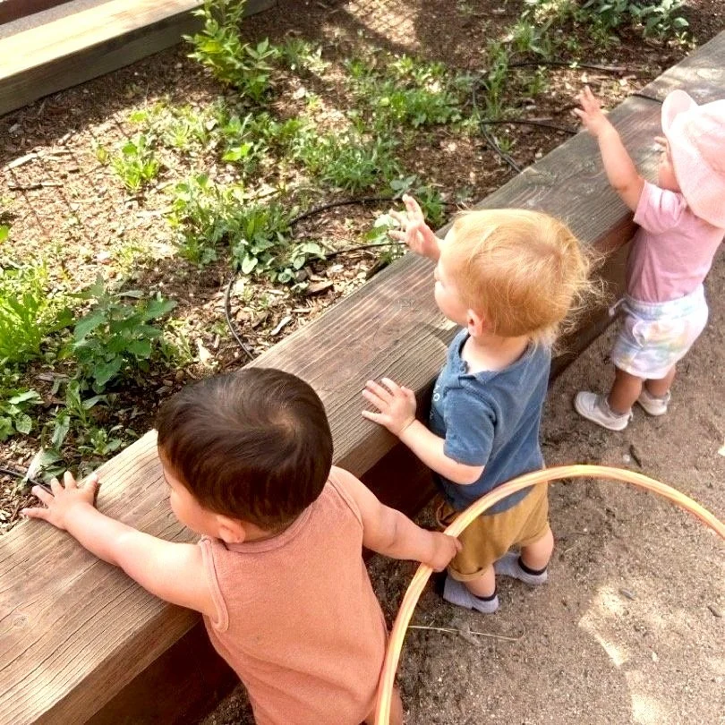 As they grow, older infants and toddlers explore a spacious outdoor play area where they can run, climb, and connect with the natural world through joyful movement and discovery.